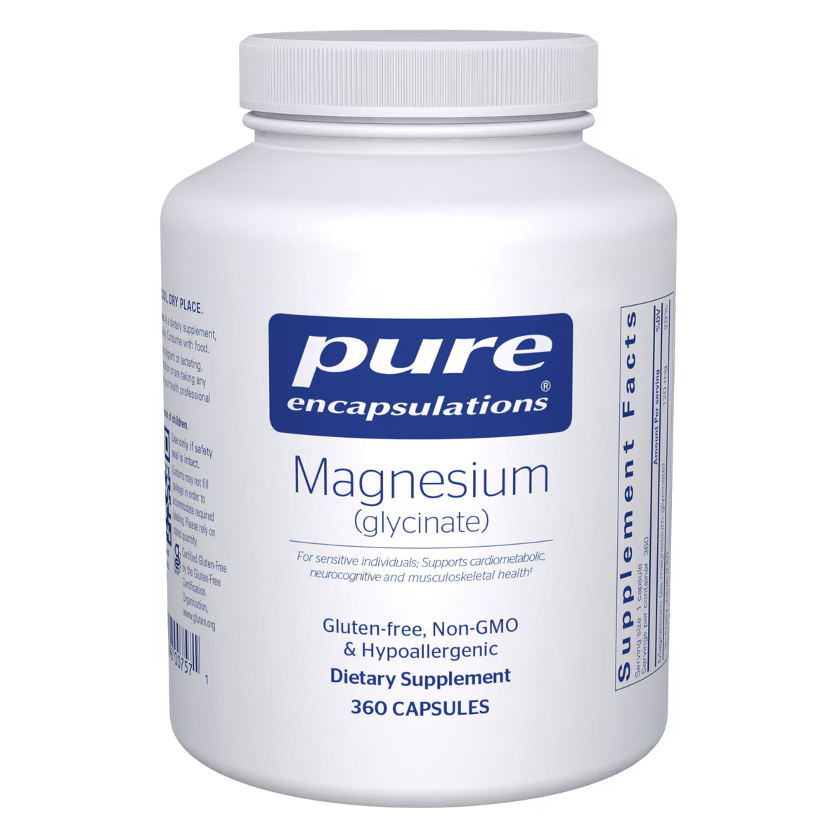 Magnesium Glycinate provides a highly bioavailable, well-tolerated form of magnesium ideal for sensitive individuals. This essential mineral supports cellular energy production, muscle and nerve function, and cardiovascular wellness — without the digestive discomfort common with other forms.‡