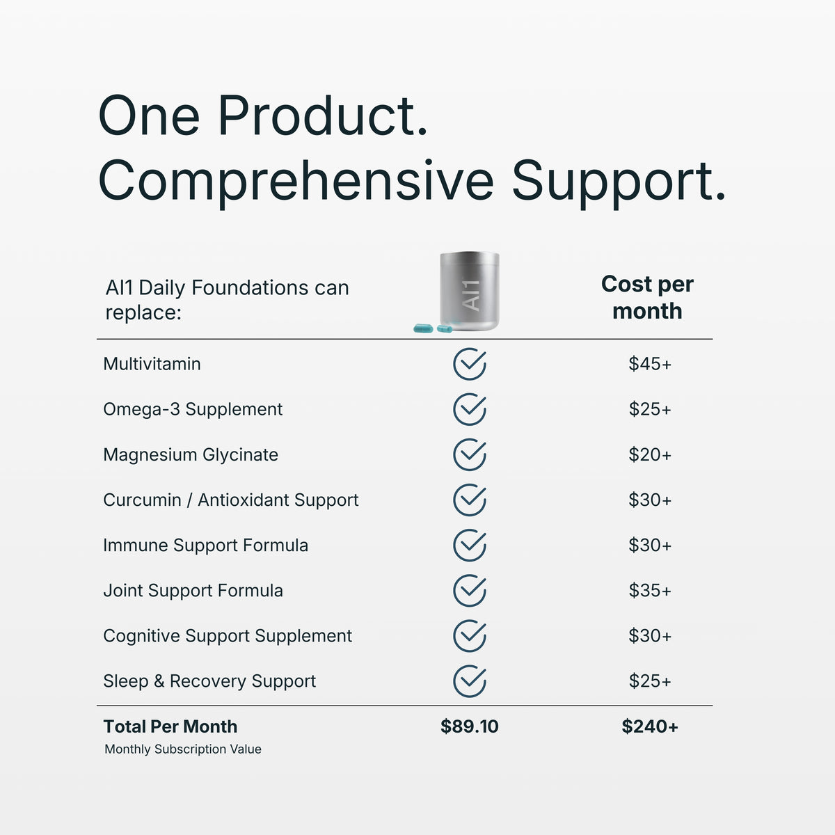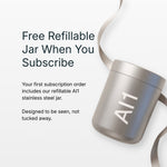 Includes our Refillable Stainless Steel Jar plus a 1-month supply of AI1 Daily Foundations