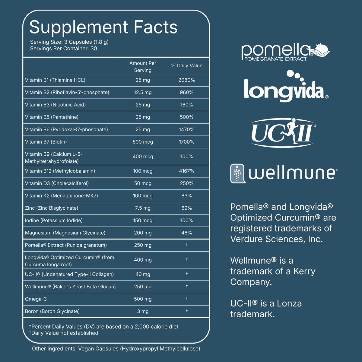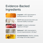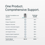 A comprehensive, science-backed supplement designed to support the systems that impact long-term health—including cognition, sleep, immune strength, recovery, joint comfort, cardiovascular function, metabolism, skin health, and inflammation.* One smart, foundational formula for people who want simplicity and results in their health routine.