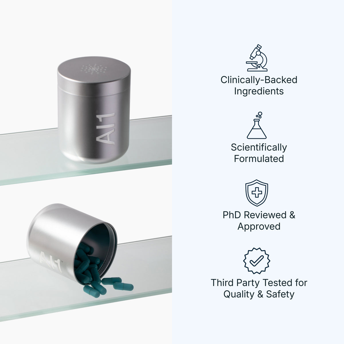 AI1 is independently tested by Eurofins using USP-aligned methods to verify safety and quality.
