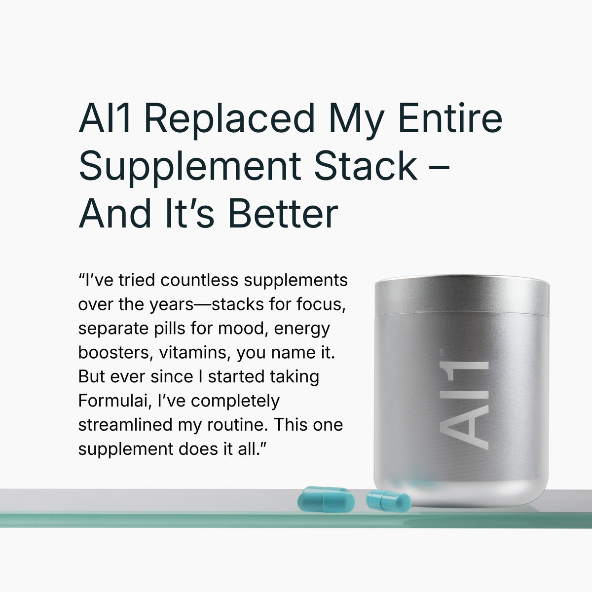 As a clinician, I’m very selective about what I recommend, and Formulai AI1 is a daily supplement I confidently suggest to my clients and patients for foundational nutrition. Its science-backed ingredients, transparency, and easy-to-take all-in-one format make it a simple, effective way to support everyday health without overcomplicating supplementation.