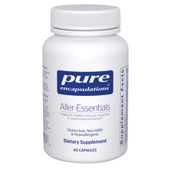 Aller-Essentials – IMPROVED combines traditional botanicals with clinically researched nutrients for targeted seasonal support. Featuring Tinospora cordifolia for immune modulation, quercetin and hesperidin for mast cell stabilization, and EpiCor® yeast fermentate for balanced immune activation, this formula provides multi-pathway support for immune resilience and respiratory comfort.
