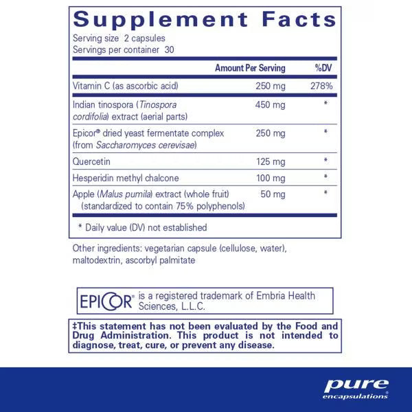 Includes vitamin C, quercetin, Tinospora cordifolia, EpiCor®, and apple extract‡
