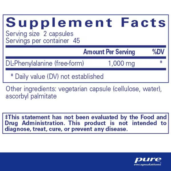 DL-Phenylalanine provides a combination of essential amino acids that support neurotransmitter production, helping to promote a positive mood, emotional balance, and musculoskeletal relaxation.‡ This formula is well tolerated and made with high-quality ingredients for reliable daily support.