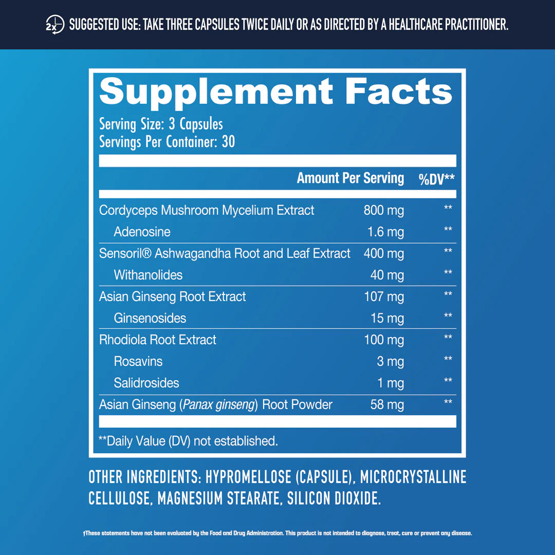 Contains clinically studied Sensoril® Ashwagandha and Cordyceps Mushroom Extract
