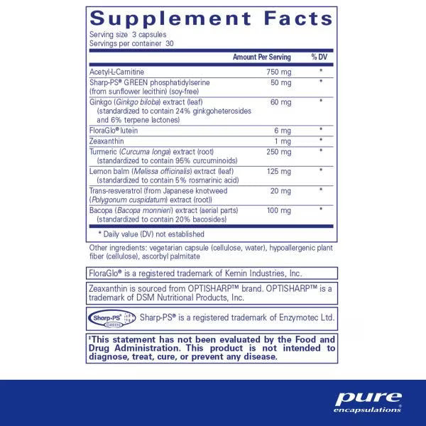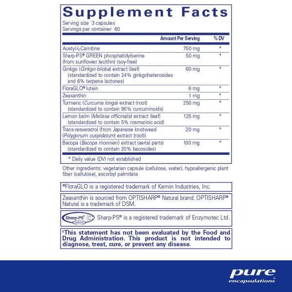 Comprehensive formula supporting memory, focus, and cognitive performance with key botanicals, nutrients, and antioxidants for neural and vascular health.‡