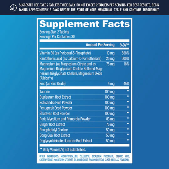 For best results, begin taking approximately 3 days before the start of your menstrual cycle and continue throughout.
