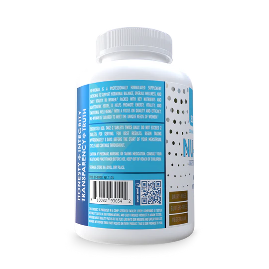 Nu-Woman is a hormone-balancing supplement formulated to support women’s health and well-being through all life stages — from menstruation to perimenopause. It combines key nutrients like magnesium, zinc, and vitamin B6 with botanical extracts such as Shatavari Root, Dong Quai Root, Fenugreek Seed, Taurine, and Schisandra Fruit to promote hormonal harmony, stress balance, and energy support.