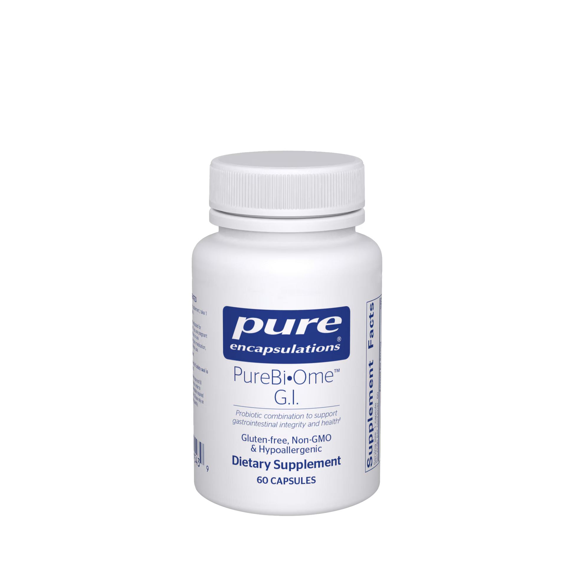 PureBi•Ome™ G.I. combines four clinically researched probiotic strains with l-glutamine to support digestive balance and comfort. With 12.5 billion CFU per capsule, this formula promotes intestinal barrier integrity, enhances G.I. function, and supports natural defenses in times of stress.‡