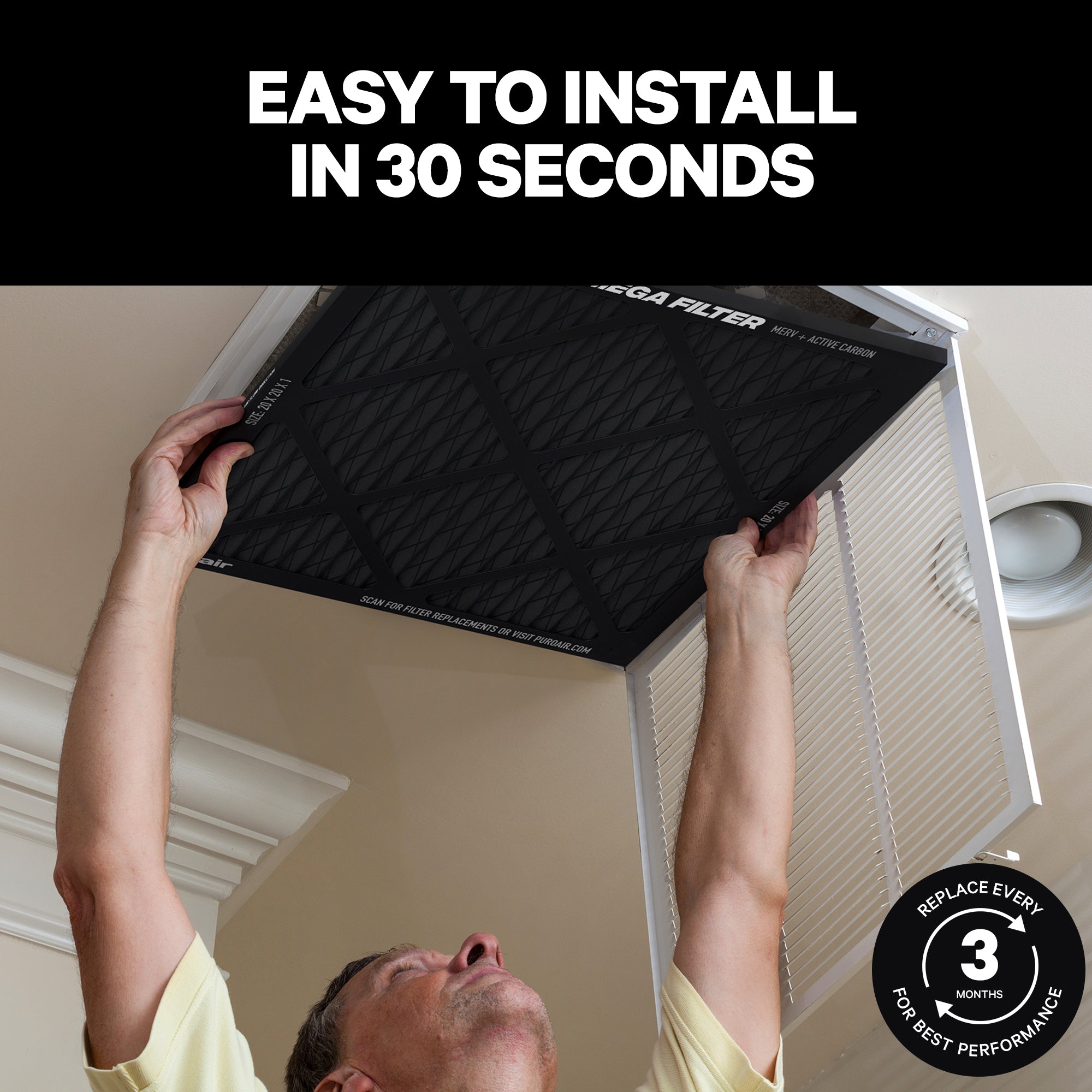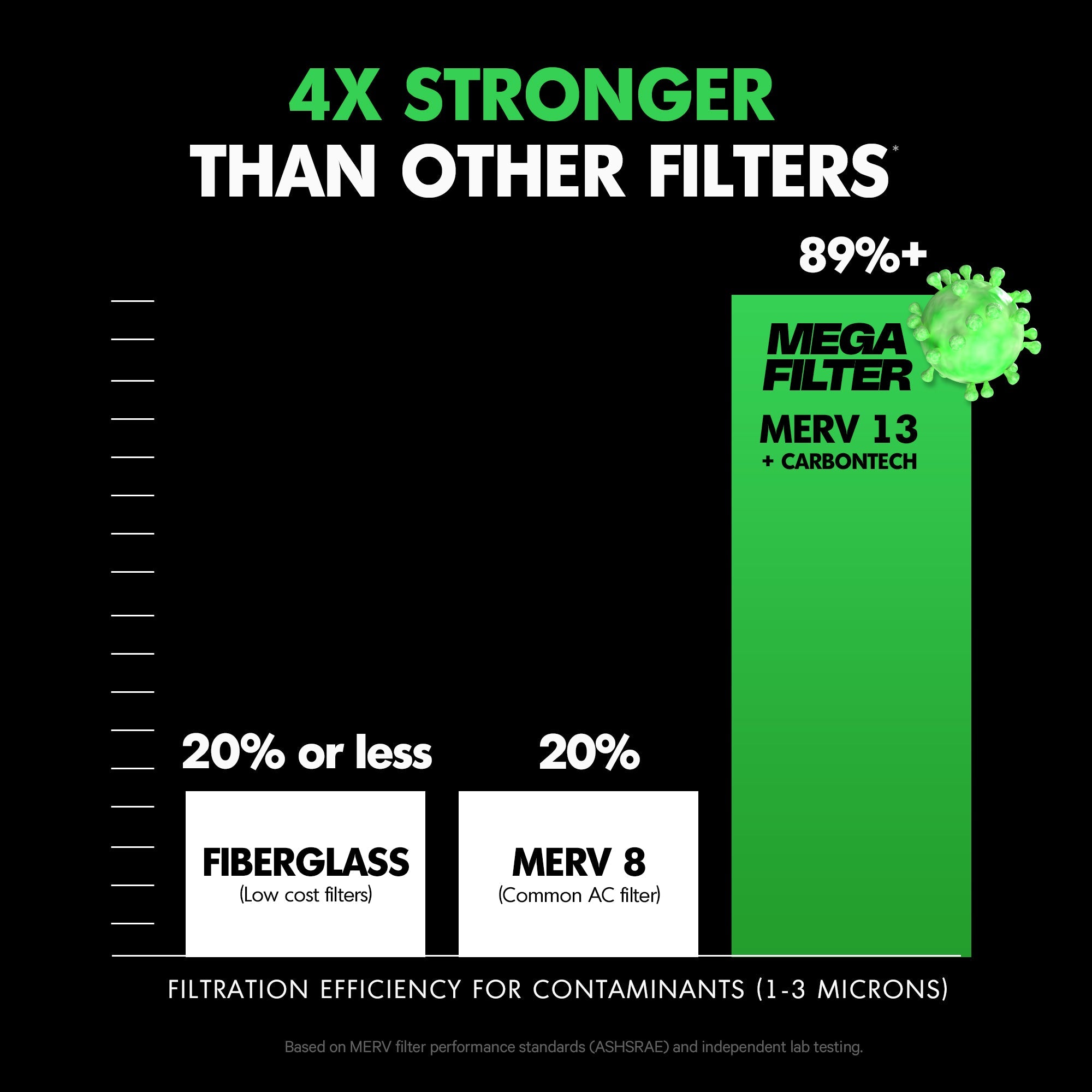 The HVAC Mega Filter is built to deliver cleaner, fresher air for your entire home or office. With a powerful 3-layer design, including a MERV 13 filter and CarbonTech™ activated carbon, it captures pollutants up to 200x smaller than a human hair while lasting 3x longer than standard fiberglass filters. From allergens and pet dander to smoke, odors, and VOCs, this filter helps create a healthier indoor environment for your family or workplace.