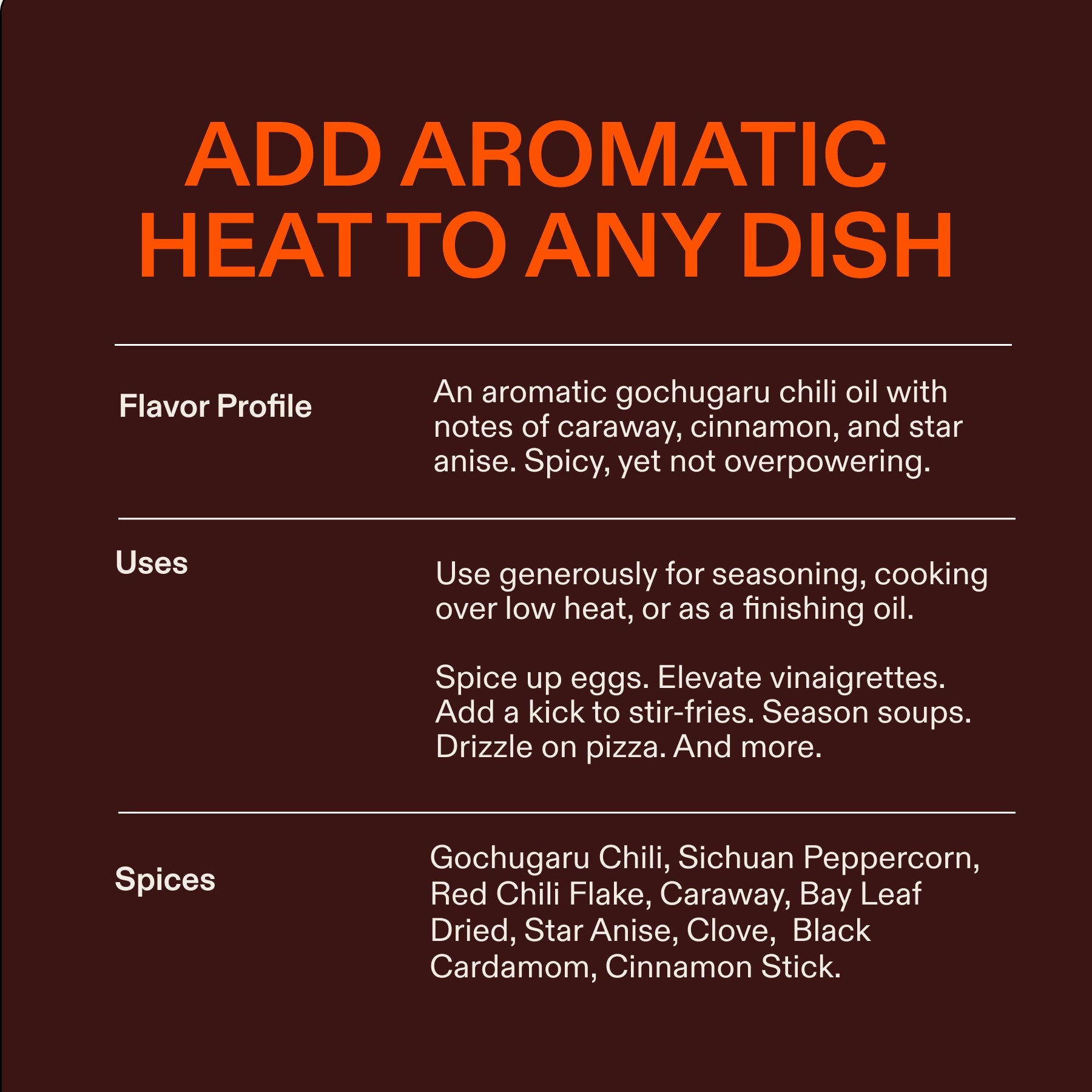 Combines the world’s purest culinary oil with a chef-crafted chili infusion.